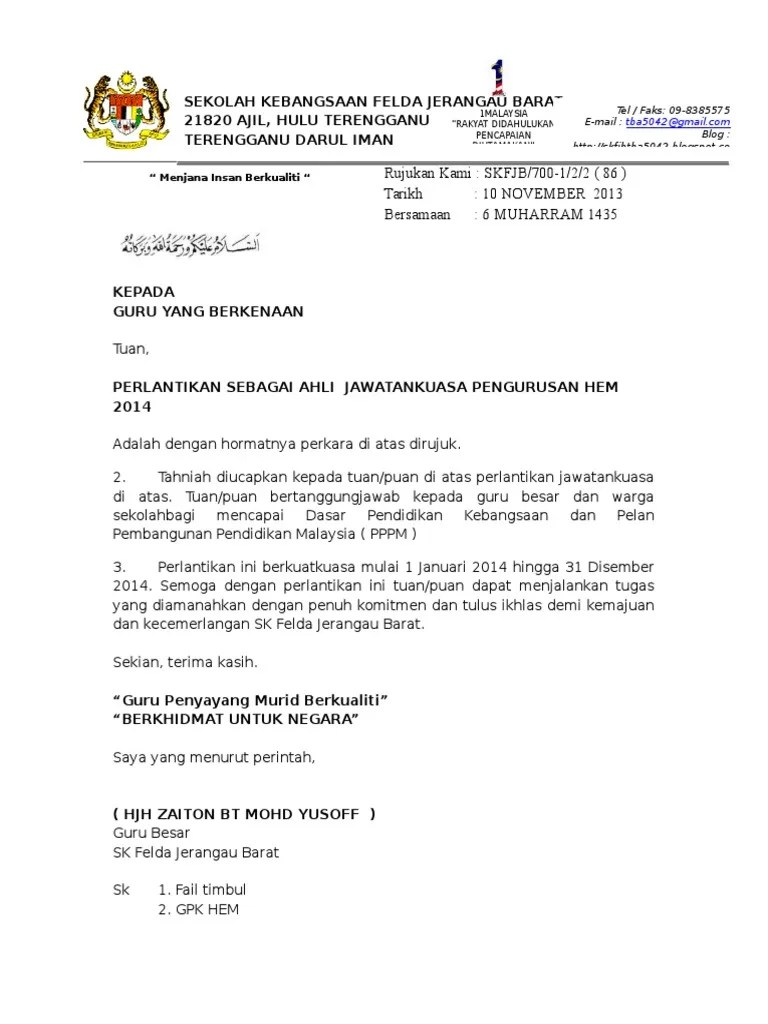 Surat Lantikan Jawatan / 1. Lantikan ke jawatan penolong jurutera gred ja29, tertakluk kepada kekosongan jawatan, apabila telah disahkan dalam perkhidmatan dan; Sijil pelajaran malaysia (spm) atau kelayakan yang diiktiraf setaraf dengannya oleh kerajaan. Suruhanjaya hanya akan mengemukakan sekali sahaja surat tawaran pelantikan ini dan menjadi tanggungjawab calon untuk menyimpan surat berkenaan dengan … 22.03.2022 · kabinet negeri telah bersetuju secara prinsipnya, berkenaan cadangan mengehadkan tempoh lantikan ketua menteri kepada dua penggal sahaja. Pengesahan jawatan biasanya dalam tempoh sebulan hingga 6 bulan dan lebih lama bergantung kepada … Syarat lantikan calon bagi lantikan hendaklah memiliki kelayakan seperti berikut:
